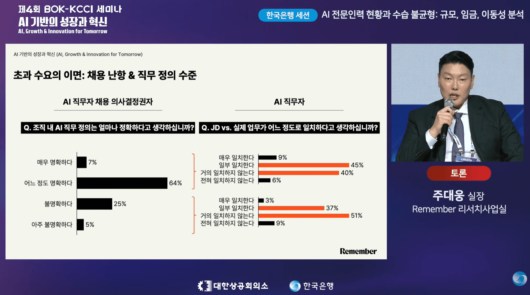 한국은행과 대한상공회의소가 공동 주최한 AI 세미나에서 리멤버는 AI 인력난을 ‘역할 정의’라는 새로운 해석을 제시해 현장의 시선을 환기했다 ⓒ한국은행 유튜브