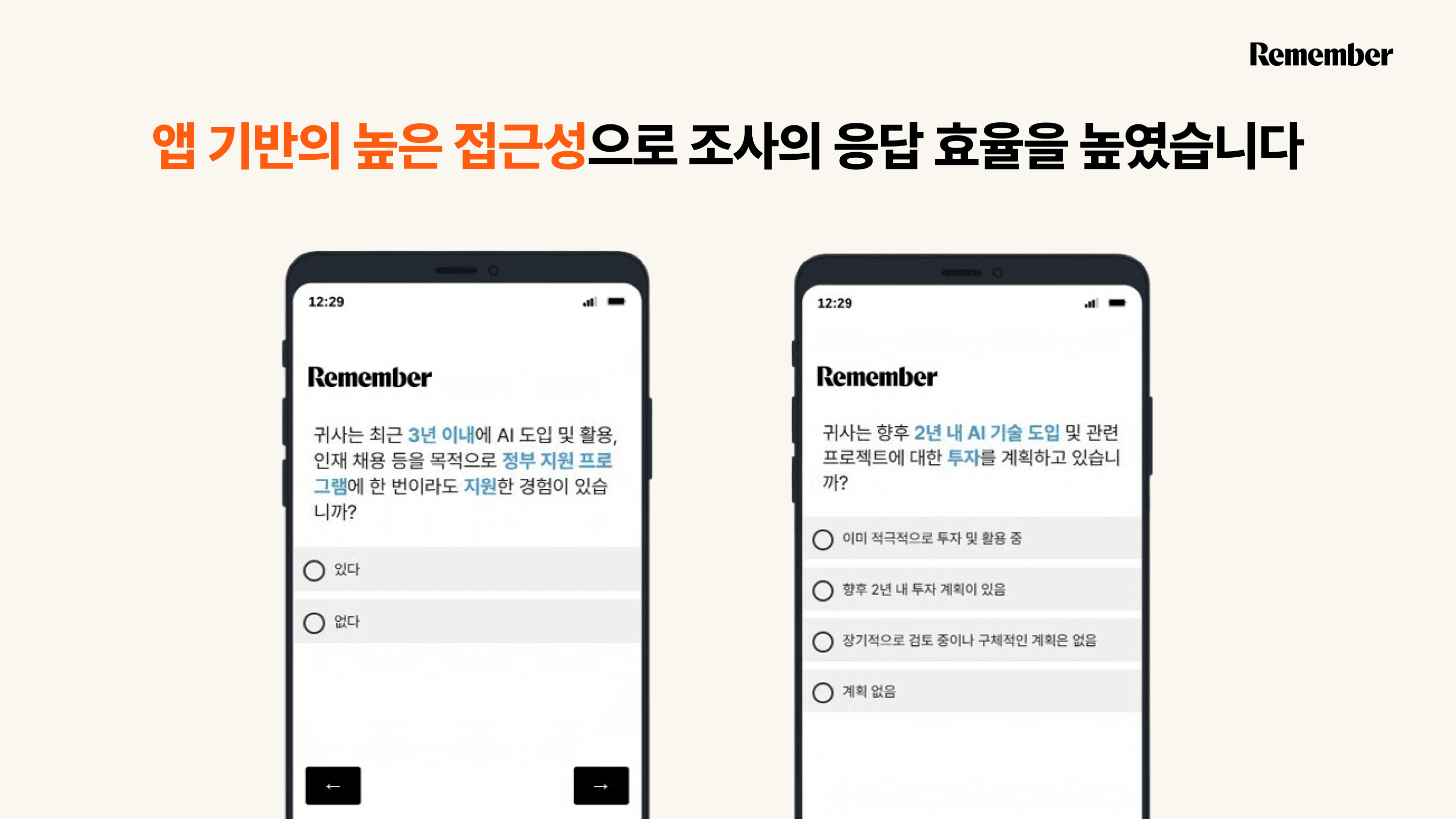 • 리멤버 리서치: 명함 데이터 기반으로 응답자의 소속, 직종, 직급 등이 이미 검증된 상태에서 설문을 진행합니다. 덕분에 ‘AI 도입의 실질적 의사결정자’ 같은 좁고 정교한 타기팅이 가능합니다.